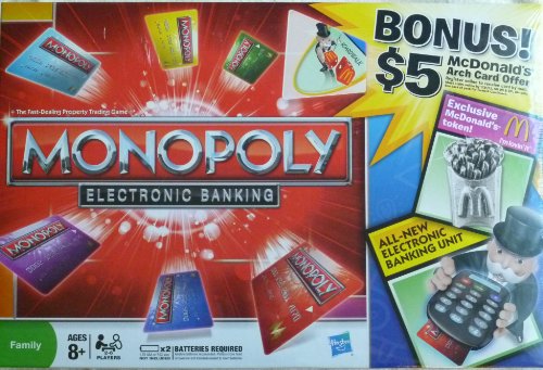 Make your millions with Monopoly Electronic Banking! Keep your finances at your fingertips with 6 cool bank cards. Includes exclusive McDonald's token and McDonald's Arch Card offer that expires on 1/31/2012.